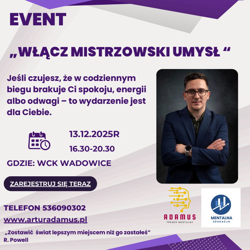 Artur Adamus – trener mentalny, autor książki „Uwolnij potencjał”, specjalista w budowaniu odporności psychicznej i dobrostanu.